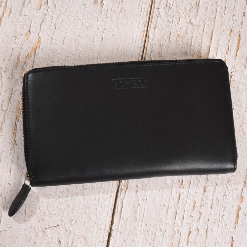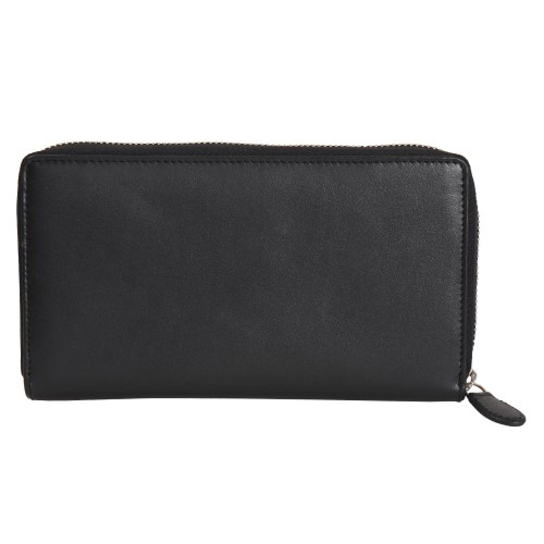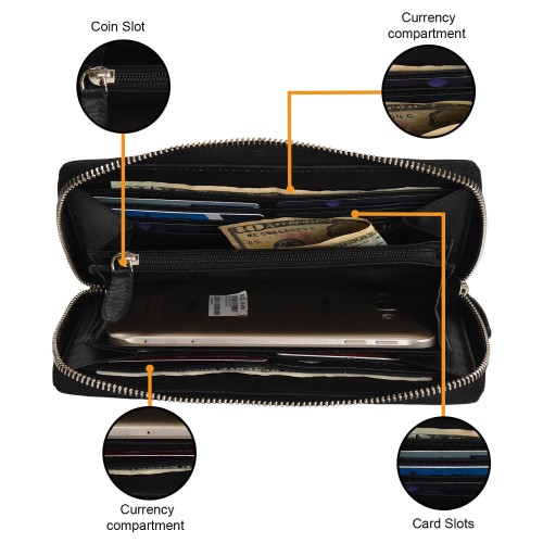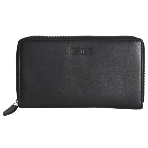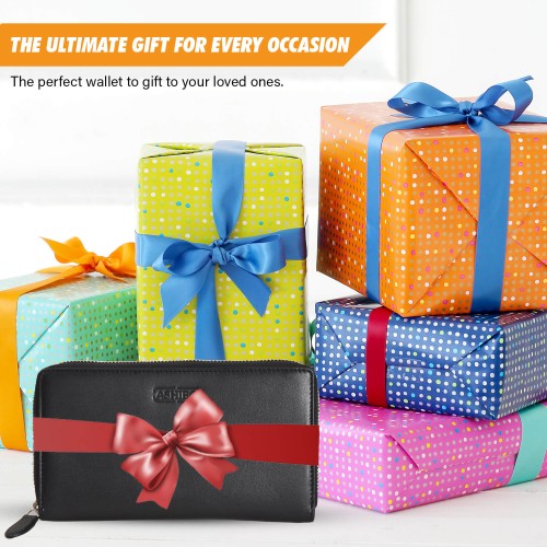 ASHIBO Zip Around Wallet for Womens Nappa Flat Genuine Leather Multi Pockets,Card Slots,Window & Bill Compartment Ideal for Daily Use, Office, Party, Clutch Black
