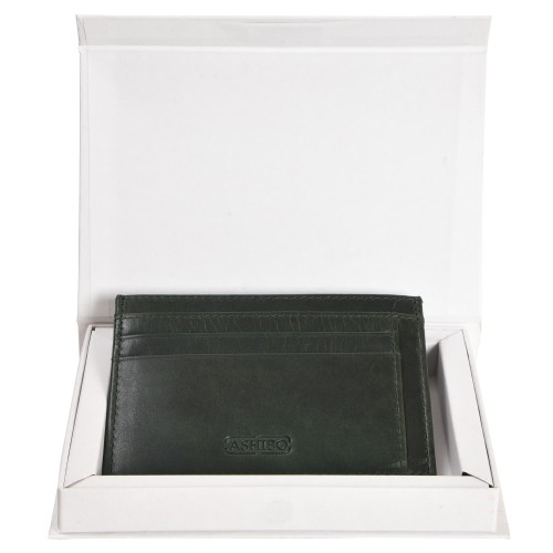 ASHIBO Card Holder For Men Women Credit Card & Business Multi Card Case Waxed Vegetable Tanned Finished Genuine Leather Coin Purse Green