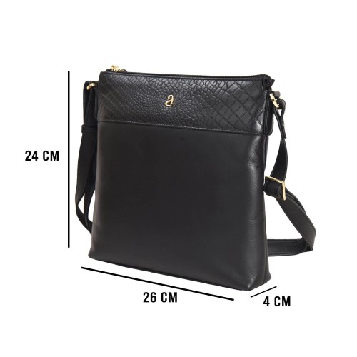 This Sling Bag is made up from High quality Croco Embossed Printed Leather & Nappa Genuine Leather which have a delicate texture. At the same time, with its unique design detail along with the several compartments enhance the fashion sense of the product.